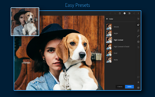 Content rating: Lightroom Photo & Video Editor is rated as “Everyone”, which means that its content may be suitable for all ages. Lightroom Photo & Video Editor may contain minimal cartoon, fantasy or mild violence and/or infrequent use of mild language.