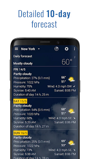 - Daily and hourly forecast with rain and snow information